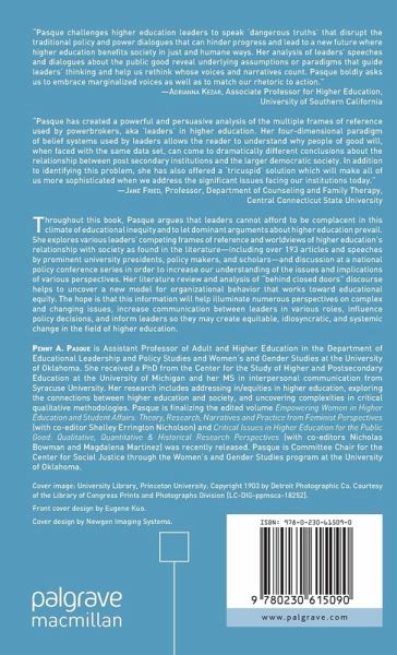 "Critical discourse analysis, coupled with the analyses of narratives and conversations employed in this study, is a brilliant methodological tool for illuminating that power and its consequences for practice and policy in higher education. Written with passion and zeal for social change, Pasque's critique of educational leaders is both sobering and inspiring." - Tatiana Suspitsyna, Associate Professor of Educational Studies, The Ohio State University, USA