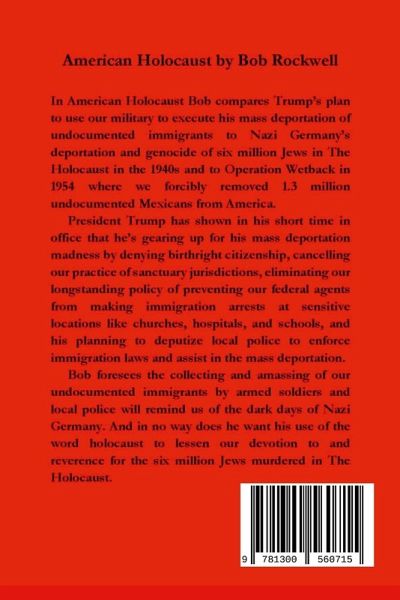 American Holocaust compares Trump's plan to use our military to execute his mass deportation of undocumented immigrants to Nazi Germany's deportation and genocide of six million Jews in The Holocaust in the 1940s and Operation Wetback in 1954 where we forcibly removed 1.3 million undocumented Mexicans from America.