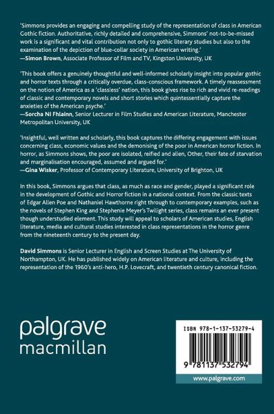1. Introduction: Establishing the Place of Class in US Gothic and Horror Fiction.- 2. Class and Horror Fiction during the Early Twentieth Century.- 3. Class and Horror Fiction at Mid-Century.- 4. Representing Class during the Horror Boom of the 1970s and 1980s.- 5. Horror Fiction and Class in the Contemporary1. Introduction: Establishing the Place of Class in US Gothic and Horror Fiction.- 2. Class and Horror Fiction during the Early Twentieth Century.- 3. Class and Horror Fiction at Mid-Century.- 4. Representing Class during the Horror Boom of the 1970s and 1980s.- 5. Horror Fiction and Class in the Contemporary Period. Period.