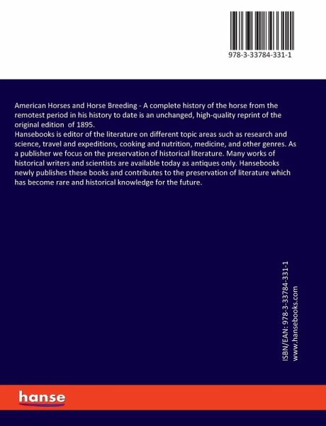 American Horses and Horse Breeding - A complete history of the horse from the remotest period in his history to date is an unchanged, high-quality reprint of the original edition of 1895.