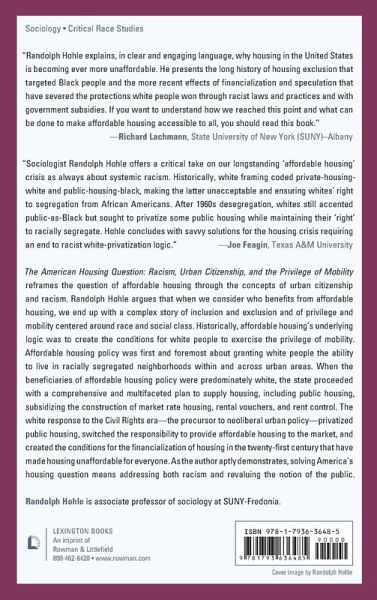 The American Housing Question reframes the question of affordable housing through the concepts of urban citizenship and racism. As the author aptly demonstrates, solving America's housing question means addressing both the effects of racism on housing and revaluing the notion of the public.