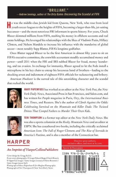 In a gripping true account of white-collar crime and betrayal at the highest levels of international business, two investigative reporters, drawing on sources in U.S. law enforcement, recount how Chuck Blazer, a stay-at-home New York soccer dad, illegally made millions from FIFA and became an unlikely FBI whistleblower. 30,000 first printing.