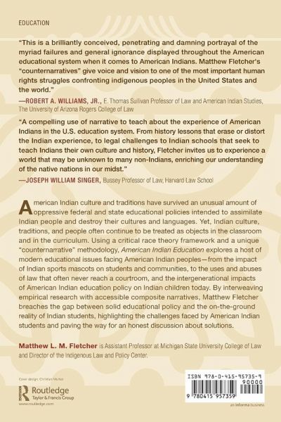 America Indian culture and traditions have survived an unusual amount of oppressive federal and state educational policies intended to assimilate Indian people and destroy their cultures and languages. Yet, Indian culture, traditions, and people often continue to be treated as objects in the classroom and in the curriculum. Using a critical race theory framework and a unique "counternarrative" methodology, American Indian Education explores a host of modern educational issues facing American Indian peoples-from the impact of Indian sports mascots on students and communities, to the uses and abuses of law that often never reach a courtroom, and the intergenerational impacts of American Indian education policy on Indian children today. By interweaving empirical research with accessible composite narratives, Matthew Fletcher breaches the gap between solid educational policy and the on-the-ground reality of Indian students, highlighting the challenges faced by American Indian students and paving the way for an honest discussion about solutions.