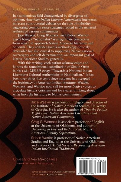 In a contentious field characterized by divergence of opinion, American Indian Literary Nationalism intervenes in recent controversial debates on the role of hybridity, suggesting common sense strategies rooted in the material realities of various communities. These essays deal with issues the authors have been wrestling with throughout their careers. Jace Weaver, Craig Womack, and Robert Warrior, assert being a "nationalist" is a legitimate perspective from which to approach Native American literature and criticism. They consider such a methodology not only defensible but also crucial to supporting Native national sovereignty and self-determination, an important goal of Native American studies, generally. However, the authors do not believe the nationalism suggested in American Indian Literary Nationalism is the only possible approach to Native literature. Each invites Natives and non-Native allies who support tribal national sovereignty and nationalist readings of Native literature to join the discussion. With this writing, each author acknowledges and honors the foundational contribution of Simon Ortiz in his 1981 MELUS essay, "Towards a National Indian Literature: Cultural Authenticity in Nationalism." It has been over thirty-five years since academe has accepted the legitimacy of American Indian literature. Weaver, Warrior, and Womack now call for more Native voices to articulate literary criticism and for clearer thinking about what links the literature to Native communities.