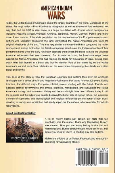 If you want to discover the captivating history of the American Indian Wars, then keep reading... Today, the United States of America is one of the largest countries in the world. Comprised of fifty states, this huge nation is filled with diverse topography, as well as a variety of flora and fauna. Not only that, but the USA is also home to a huge population with diverse ethnic backgrounds, including Hispanic, African American, Chinese, Japanese, French, German, Polish, and many more. A vast number of the white population are the descendants of the European colonists and settlers who ultimately conquered the land, dominating the Native Americans who were the original inhabitants of the land. This was very similar to the way the British conquered the Indian subcontinent, except for the fact the British conquerors didn't make the Indian subcontinent their permanent home while the early American colonists shed sweat and blood to make the untamed American wilderness their new homeland. But, in order to do so, the Americans waged wars against the Native Americans who had roamed the lands for thousands of years, driving them away from their homes in a brutal and horrific manner. Part of the blame lay on the Native Americans as well since their retaliation on the newcomers trespassing their lands were often brutal and horrific. In American Indian Wars: A Captivating Guide to a Series of Conflicts That Occurred in North America and How They Impacted Native American Tribes, Including Events Such as the Sand Creek Massacre, you will discover topics such as The Foreign Colonization of America The American-Indian Wars During the Colonial Period (1609-1774) Beginning of the American Indian Wars in the East of the Mississippi: The American Revolutionary War (1775-1783) American-Indian Wars East of the Mississippi after the American Revolutionary War Part 1: The Northwest Indian War American-Indian Wars East of the Mississippi after the American Revolutionary War Part 2: The Cherokee-American Wars American Indian Wars in the West of the Mississippi Conflicts Part 1: Tecumseh, the Creek War, the War of 1812, and Other Conflicts American Indian Wars in the West of the Mississippi Conflicts Part 2: Wars in the Pacific Northwest, Southwest, California, the Great Basin, and the Great Plains And much, much more! So if you want to learn more about the American Indian Wars, scroll up and click the "add to cart" button!