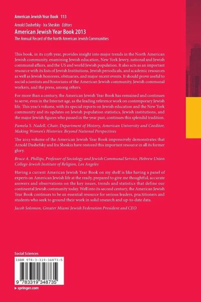 The 2013 volume of the American Jewish Year Book impressively demonstrates that Arnold Dashefsky and Ira Sheskin have restored this important resource in all its former glory.