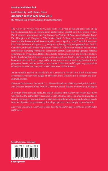 The American Jewish Year Book, now in its 116th year, is the annual record of the North American Jewish communities and provides insight into their major trends. Part I presents a forum on the Pew Survey, "A Portrait of American Orthodox Jews." Part II begins with Chapter 13, "The Jewish Family." Chapter 14 examines "American Jews and the International Arena (April 1, 2015 - April 15, 2016), which focuses on US-Israel Relations. Chapters 15-17 analyze the demography and geography of the US, Canadian, and world Jewish populations. In Part III, Chapter 18 provides lists of Jewish institutions, including federations, community centers, social service agencies, national organizations, synagogues, Hillels, day schools, camps, museums, and Israeli consulates. In the final chapters, Chapter 19 presents national and local Jewish periodicals and broadcast media; Chapter 20 provides academic resources, including Jewish Studies programs, books, articles, websites, and research libraries; and Chapter 21 presents lists of major events in the past year, Jewish honorees, and obituaries.