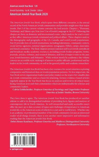 The American Jewish Year Book has been a key resource for social scientists exploring comparative and historical data on Jewish population patterns. No less important, the Year Book serves organization leaders and policy makers as the source for valuable data on Jewish communities and as a basis for planning. Serious evidence-based articles regularly appear in the Year Book that focus on analyses and reviews of critical issues facing American Jews and their communities which are indispensable for scholars and community leaders.