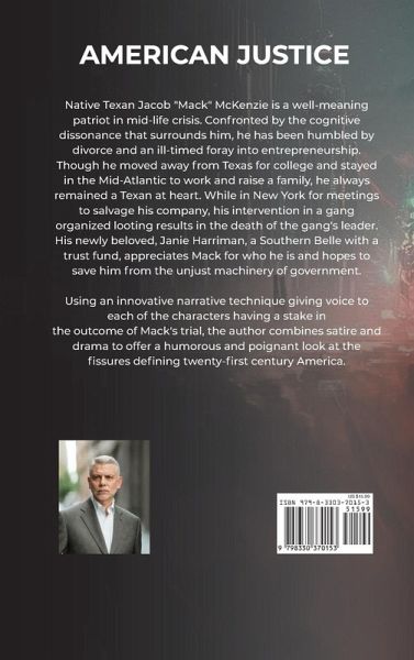 Native Texan Jacob "Mack" McKenzie is a well-meaning patriot in mid-life crisis. Confronted by the cognitive dissonance that surrounds him, he has been humbled by divorce and an ill-timed foray into entrepreneurship. Though he moved away from Texas for college and stayed in the Mid-Atlantic to work and raise a family, he always remained a Texan at heart. While in New York for meetings to salvage his company, his intervention in a gang organized looting results in the death of the gang's leader; His newly beloved, Janie Harriman, a Southern Belle with a. trust fund, appreciates Mack for who he is and hopes to save him from the unjust machinery of government. Using an innovative narrative technique giving voice to each of the characters having a stake in the outcome of Mack's trial, the author combines satire and drama to offer a humorous and poignant look at the fissures defining twenty-first century America.