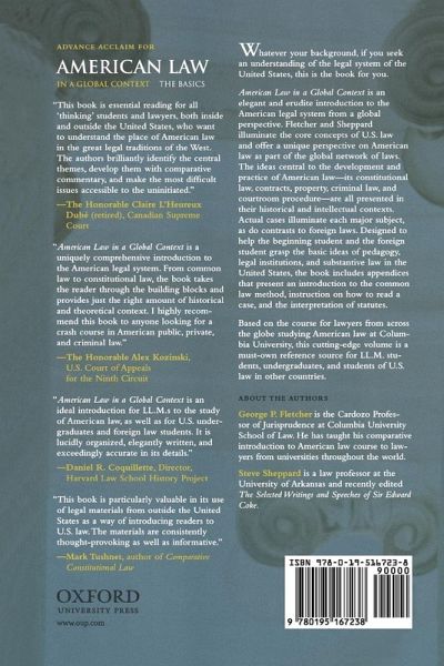 American Law in a Global Context is an elegant and erudite introduction to the American legal system from a global perspective. It covers the law and lawyering tools taught in the first year of law school, explaining the underlying concepts and techniques of the common law used in U.S. legal practice. The ideas central to the development and practice of American law, as well as constitutional law, contracts, property, criminal law, and courtroom procedure, are all presented in their historical and intellectual contexts, accessible to the novice but with insight that will inform the expert. Actual cases illuminate each major subject, engaging readers in the legal process and the arguments between real people that make American law an ever-evolving system.