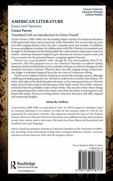 Cesare Pavese (1908-1950) was the leading Italian scholar of American literature of the generation that came to maturity under Mussolini