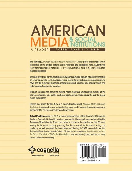 The anthology American Media and Social Institutions: A Reader places mass media within the context of the greater cultural, social, historical, and ideological world. Students will learn that mass media is not created in a vacuum, but rather it sits at the intersection of all the social sciences.The book provides a firm foundation for studying mass media through introductory chapters on how media works, semiotics, ideology, and media literacy. Subsequent chapters examine news and the culture of journalism, magazines, sound, recording and popular music, and radio broadcasting from its inception.Students will also read about the moving image, electronic visual culture, the role of the Internet, advertising and public relations, legal controls, media research, and the global media marketplace.Serving as a primer for the study of a media-drenched world, American Media and Social Institutions is designed for use in introductory mass media classes. It can also serve as a supplement for courses in sociology and psychology.