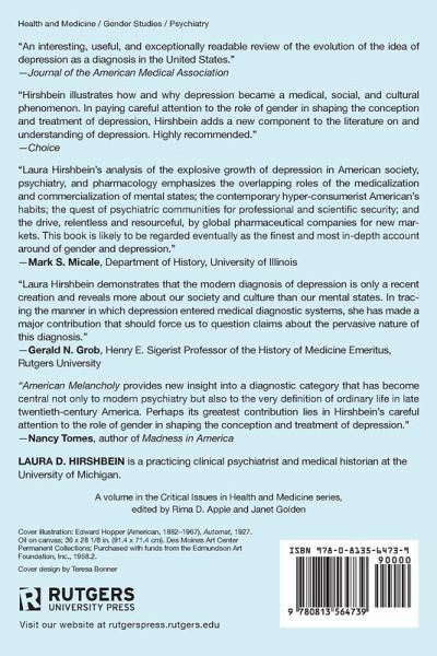Traces the growth of depression as an object of medical study and as a consumer commodity and illustrates how and why depression came to be such a huge medical, social, and cultural phenomenon. This is the first book to address gender issues in the construction of depression, explores key questions of how its diagnosis was developed, how it has been used, and how we should question its application in American society.
