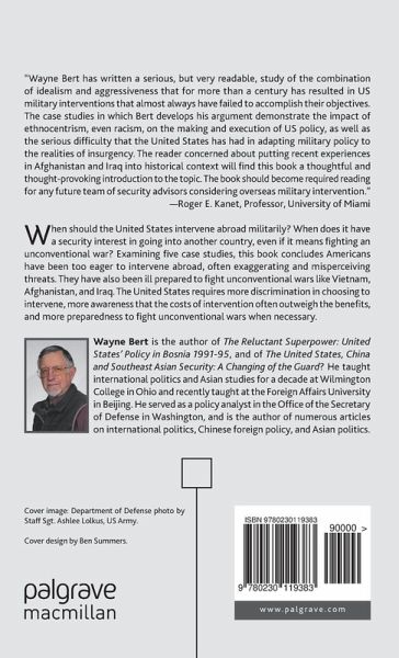 "Wayne Bert has written a serious, but very readable, study of the combination of idealism and aggressiveness that for more than a century has resulted in U.S. military interventions that almost always have failed to accomplish their objectives - either for the United States or for the target peoples and countries. Bert shows that in most cases, from the Philippines at the turn of the 20th century to Iraq in the early 21st century, the United States had no clear national security interest involved before intervention. Moreover, the 'American style of war,' which relies on overwhelming materiel superiority, was ill suited to the low-intensity warfare that ensued. As a result, he concludes, "One could make an idealistic case for all these wars, but no matter how desirable the outcome, there would still be the problem of persuading the listener that the benefits of the intervention exceeded the political, economic and human costs it sustained for both the United States and the target country." The case studies in which Bert develops his argument demonstrate the impact of ethnocentrism, even racism, on the making and execution of U.S. policy, as well as the serious difficulty until very recently in Iraq and Afghanistan that the United States has had in adapting military policy to the realities of insurgency.The reader concerned about putting the recent U.S. experiences in Afghanistan and Iraq into historical context will find American Military Intervention in Unconventional War a thoughtful and thought-provoking introduction to the topic. The book should become required reading for any future team of U.S. security advisors considering overseas military intervention." - Roger E. Kanet, Professor, University of Miami