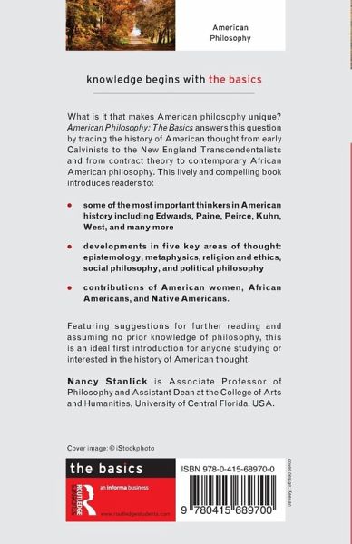 American Philosophy: The Basics introduces the history of American thought from early Calvinists to the New England Transcendentalists and from contract theory to contemporary African American philosophy. The key question it asks is: what it is that makes American Philosophy unique? This lively and compelling book moves through key periods in the development of American thought from the founding fathers to the transcendentalists and pragmatists to contemporary social commentators. Readers are introduced to: Some of the most important thinkers in American history including Jonathan Edwards, Thomas Paine, Charles Sanders Pierce, Thomas Kuhn, Cornel West and many more Developments in five key areas of thought: epistemology, metaphysics, religion and ethics, social philosophy, and political philosophy The contributions of American women, African-Americans and Native Americans. Featuring suggestions for further reading and assuming no prior knowledge of philosophy, this is an ideal first introduction for anyone studying or interested in the history of American thought.