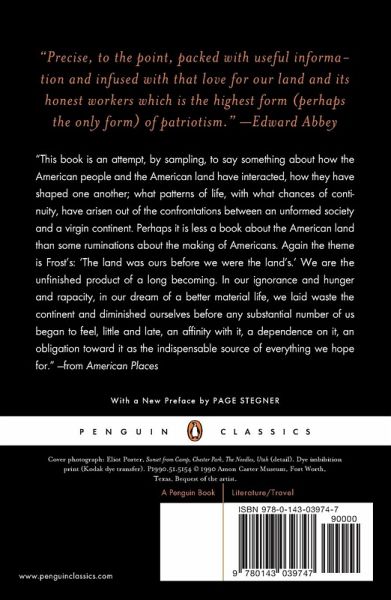 "This book is an attempt, by sampling, to say something about how the American people and the American land have interacted, how they have shaped one another; what patterns of life, with what chances of continuity, have arisen out of the confrontations between an unformed society and a virgin continent. Perhaps it is less a book about the American land than some ruminationsabout the making of America. . . . We are the unfinished product of a long becoming."