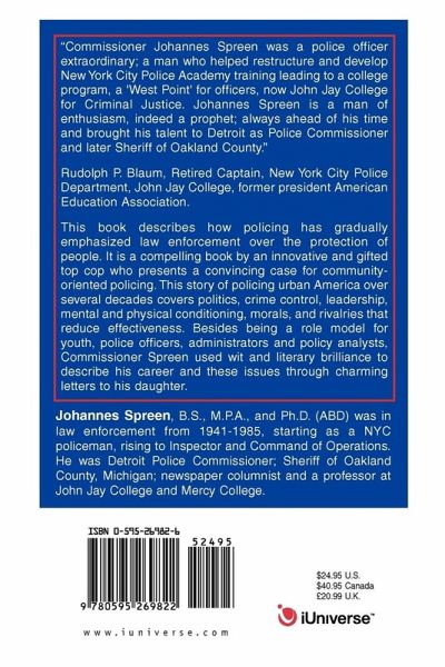 "Commissioner Johannes Spreen was a police officer extraordinary; a man who helped restructure and develop New York City Police Academy training leading to a college program, a 'West Point' for officers, now John Jay College for Criminal Justice. Johannes Spreen is a man of enthusiasm, indeed a prophet; always ahead of his time and brought his talent to Detroit as Police Commissioner and later Sheriff of Oakland County." Rudolph P. Blaum, Retired Captain, New York City Police Department, John Jay College, former president American Education Association.
