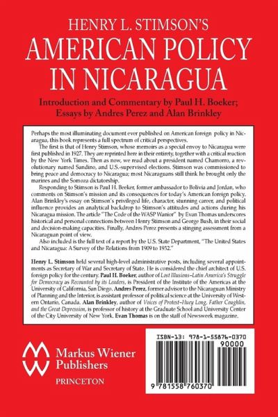 Perhaps the most illuminating document ever published on American foreign policy in Nicaragua, this book represents a full spectrum of critical perspectives. The first is that of Henry Stimson, whose memoirs as a special envoy to Nicaragua were first published in 1927. They are reprinted here in their entirety, together with a critical reaction by the New York Times. Then as now, we read about a president named Chamorro, a revolutionary named Sandino, and U.S.-supervised elections. Stimson was commissioned to bring peace and democracy to Nicaragua; most Nicaraguans still think he brought only the marines and the Somoza dictatorship. Responding to Stimson is Paul H. Beeker, former ambassador to Bolivia and Jordan, who comments on Stimson's mission and its consequences for today's American foreign policy. Alan Brinkley's essay on Stimson's privileged life, character, stunning career, and political influence provides an analytical backdrop to Stimson's attitudes and actions during his Nicaragua mission. The article "The Code of the WASP Wanior" by Evan Thomas underscores historical and personal connections between Henry Stimson and George Bush, in their social and decision-making capacities. Finally, Andres Perez presents a stinging assessment from a Nicaraguan point of view. Also included is the full text of a report by the U.S. State Department, "The United States and Nicaragua: A Survey of the Relations from 1909 to 1932."