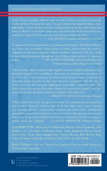 Ch. 1"The Bad and the Ugly: Chinese Perceptions of the 2016 U.S. Presidential Election" Zhang Guoxi Ch. 2 "Trump's Triumph Through Indian Eyes: Terribly Tragic, Truly Transformative or Totally Trivial?" Devika Sharma and Varun Sahni Ch. 3"A Close Look at Changes in Japan-US Relations: The 2016 US Presidential Election as an Example" Hidematsu Hiyoshi Ch. 4 "South Korea and the 2016 US Presidential Elections: A Security-Trade Nexus Redefined?" Jungkun Seo, Young Hwan Park, and Alex Soohoon Lee Ch. 5 "Straining Vows: Britain, the Election of Donald Trump, and the Special Relationship" Clive Webb Ch. 6 "A View of Finnish-U.S. Relations: Past, Present, and Future" Anna Kronlund Ch. 7 "'America the Nightmare. Soon on your screen. Frightful Release Expected in 2017': French Views of the 2016 Presidential Elections in the US" François Vergniolle de Chantal Ch. 8"'Looking forward.. Maybe': The 2016 United States' Presidential Elections from Russia's Standpoint" Eric Shiraev Ch. 9"A Brazilian View of U.S. Political Dynamics" Guilherme Santos Mello and Reginaldo Moraes Ch. 10 "The 2016 American Presidential Election in Chile" Luis Maira Ch. 11 "Mexican Views of the US and of the 2016 Presidential Election" Jesus Velasco Ch. 12 "Peru and Its Perspectives on the United States: An Approach to the Trump Era" Oscar Vidate A. Ch. 13"Final Thoughts" Jesus Velasco
