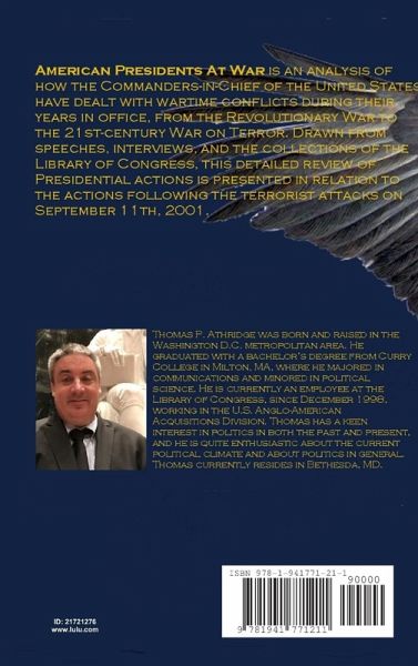 American Presidents At War is an analysis of how the Commanders-in-Chief of the United States have dealt with wartime conflicts during their years in office, from the Revolutionary War to the 21st-century War on Terror. Drawn from speeches, interviews, and the collections of the Library of Congress, this detailed review of Presidential actions is presented in relation to the actions following the terrorist attacks on September 11th, 2001.
