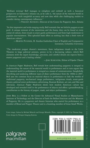 Please note this is a 'Palgrave to Order' title (PTO). Stock of this book requires shipment from an overseas supplier. It will be delivered to you within 12 weeks. This study analyses the history of puppet, mask, and performing object theatre in the United States over the past 150 years to understand how a peculiarly American mixture of global cultures, commercial theatre, modern-art idealism, and mechanical innovation reinvented the ancient art of puppetry.