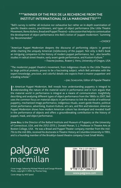 'In American Puppet Modernism, Bell presents a wide-ranging history of puppets and performing objects within a US socio-political context, contributing new insight into, and detailed analysis of, their roles in US society and theatre history. He simultaneously investigates and re-thinks the role of material objects on stage and in popular culture.' - Alissa Mello, Platform