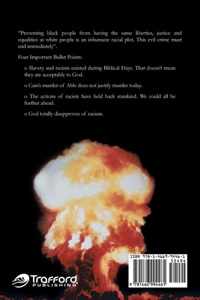 "Preventing black people from having the same liberties, justice and equalities as white people is an inhumane racial plot. This evil crime must end immediately". Four Important Bullet Points: o Slavery and racism existed during Biblical Days. That doesn't mean they are acceptable to God. o Cain's murder of Able does not justify murder today. o The actions of racists have held back mankind. We could all be further ahead. o God totally disapproves of racism.