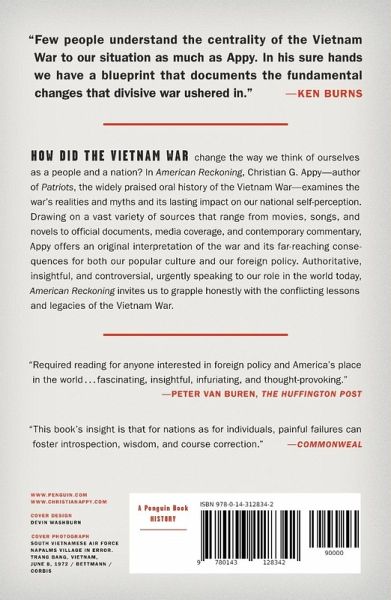 The critically acclaimed author of Patriots offers profound insight into Vietnam's place in America's self-image How did the Vietnam War change the way we think of ourselves as a people and a nation? In American Reckoning, Christian G. Appy-author of Patriots, the widely praised oral history of the Vietnam War-examines the war's realities and myths and its lasting impact on our national self-perception. Drawing on a vast variety of sources that range from movies, songs, and novels to official documents, media coverage, and contemporary commentary, Appy offers an original interpretation of the war and its far-reaching consequences for both our popular culture and our foreign policy. Authoritative, insightful, and controversial, urgently speaking to our role in the world today, American Reckoning invites us to grapple honestly with the conflicting lessons and legacies of the Vietnam War.