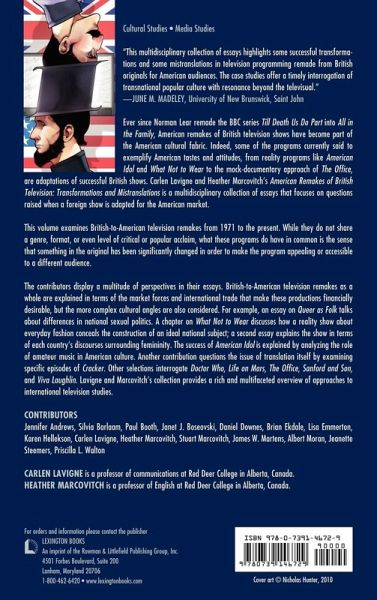 American Remakes of British Television: Transformations and Mistranslations, edited by Carlen Lavigne and Heather Marcovitch, is an international, multidisciplinary collection exploring a specific set of television remakes (including The Office, Life on Mars, Sanford and Son, What Not to Wear, and others) through the lenses of communications studies, English, history, psychology and cultural studies. What does it mean to remake a television program? What does the process of "Americanization" entail? What might the success or failure of a remade series tell us about the differences between American and British producers and audiences? The analysis in this volume results in a rich and multifaceted overview of approaches to global television studies.