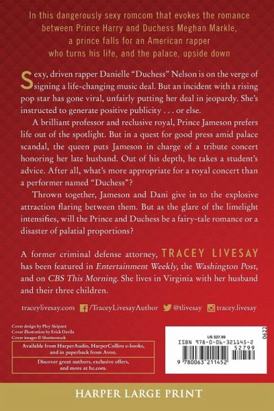 In this dangerously sexy rom-com that evokes the real-life romance between Prince Harry and Duchess Meghan Markle, a prince who wants to live out of the spotlight falls for a daring American rapper who turns his life, and the palace, upside down. Sexy, driven rapper Danielle ?Duchess? Nelson is on the verge of signing a deal that'll make her one of the richest women in hip hop. More importantly, it'll grant her control over her life, something she's craved for years. But an incident with a rising pop star has gone viral, unfairly putting her deal in jeopardy. Concerned about her image, she's instructed to work on generating some positive publicity... or else. A brilliant professor and reclusive royal, Prince Jameson prefers life out of the spotlight, only leaving his ivory tower to attend weddings or funerals. But with the Queen's children involved in one scandal after another, and Parliament questioning the viability of the monarchy, the Queen is desperate. In a quest for good press, she puts Jameson in charge of a tribute concert in her late husband's honor. Out of his depth, and resentful of being called to service, he takes the advice of a student. After all, what's more appropriate for a royal concert than a performer named ?Duchess?? Too late, Jameson discovers the American rapper is popular, sexy, raunchy and not what the Queen wanted, although he's having an entirely different reaction. Dani knows this is the good exposure she needs to cement her deal and it doesn't hurt that the royal running things is fine as hell. Thrown together, they give in to the explosive attraction flaring between them. But as the glare of the limelight intensifies and outside forces try to interfere, will the Prince and Duchess be a fairy tale romance for the ages or a disaster of palatial proportions?