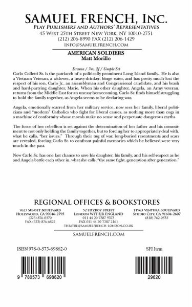 Carlo Colletti Sr. is the patriarch of a politically prominent Long Island family. He is also a Vietnam Veteran, a widower, a heavy-drinker, binge eater, and has pretty much lost the respect of his son, Carlo Jr., an assemblyman and Congressional candidate, and his brash and hard-partying daughter, Marie. When his other daughter, Angela, an Army veteran, returns from the Middle East for an uneasy homecoming, Carlo Sr. finds himself struggling to hold the family together, as Angela seems to be declaring war. Angela, emotionally scarred from her military service, now sees her family, liberal politicians and "modern" Catholics who fight for liberal causes, as nothing more than cogs in a machine of conformity whose morals make no sense and perpetuate dangerous myths. The force of her rebellion is set against the determination of her father and his commitment to not only holding the family together, but to forcing her to appropriately deal with, what he calls, "her issues." Through their tug of war, long-buried resentments and scars are revealed, forcing Carlo Sr. to confront painful memories which he believed were very much in the past. Now Carlo Sr. has one last chance to save his daughter, his family, and his self-respect as he and Angela battle each other in, what she calls, "the same fight, generation after generation."