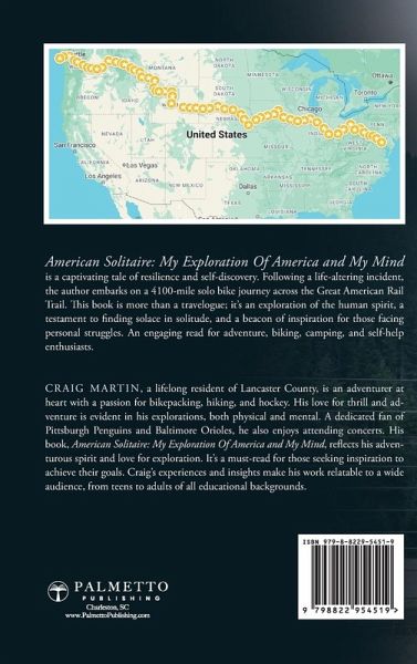 Solo Bike Journey: A 4100-Mile Trek Across the Great American Rail Trail, A Testament to Resilience and Self-Discovery Amidst Personal Struggles. American Solitaire: My Exploration Of America and My Mind is a riveting narrative that takes you on an extraordinary journey across the Great American Rail Trail. The author, after experiencing a life-altering incident, finds himself at a crossroads. With no clear direction and a mind filled with uncertainty, he turns to his bike, his only constant in a world of chaos. The book chronicles his solo bike journey, a staggering 4100 miles from Washington DC to La Push, Washington, on the Pacific Ocean on the Olympic Peninsula. It is not just a physical journey, but also a deep exploration of his mental landscape. The author uses the solitude of the trail and the rhythm of the wheels to navigate through his thoughts, fears, and hopes. This book is a testament to the human spirit's resilience. It is about finding solace in solitude, strength in vulnerability, and meaning in the mundane. It is a story of self-discovery and self-belief, of facing one's demons and emerging stronger. American Solitaire: My Exploration Of America and My Mind is a beacon of inspiration for those seeking to overcome personal struggles. It is a reminder that sometimes, the path to healing and understanding oneself lies in embracing solitude and embarking on a journey, not just outside, but within. This book is a must-read for anyone seeking inspiration, anyone who enjoys tales of personal triumph, and of course, for those who find joy in biking and camping. It transcends age, gender, and educational background, appealing to a broad spectrum of readers. It is not just a story; it is an experience, a journey that the author invites you to join. So, hop on and embark on this incredible journey of resilience, self-discovery, and exploration of America and the mind.