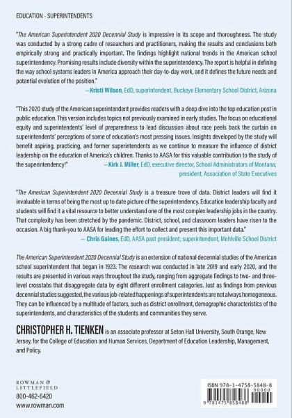 The 2020 AASA Decennial Study of the Superintendent is an extension of national decennial studies of the American school superintendent that began in 1923. The research was conducted in late 2019 and early 2020. The results are presented in various ways throughout the study, ranging from aggregate findings to two and three level crosstabs that disaggregate data by eight different enrollment categories. Just as findings from previous decennial studies suggested, the various job-related happenings of superintendents are not always homogeneous. They can be influenced by a multitude of factors…mehr