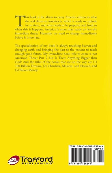 This book is the alarm to every America citizen to what the real threat to America is, which is ready to explode in no time, and what needs to be prepared and fixed so when this is happens, America is more than ready to face the immediate threat. Honestly, we need to change immediately before it is too late.