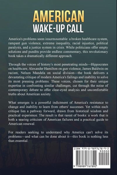 America's problems seem insurmountable: a broken healthcare system, rampant gun violence, extreme inequality, racial injustice, political paralysis, and a justice system in crisis. While politicians offer empty solutions and pundits provide endless commentary, this revolutionary book takes a dramatically different approach. Through the voices of history's most penetrating minds-Hippocrates on healthcare, Alexander Hamilton on gun violence, James Baldwin on racism, Nelson Mandela on social division-the book delivers a devastating critique of modern America's failings and inability to solve its most pressing problems. These voices, chosen for their unique expertise in confronting similar challenges, cut through the noise of contemporary debate to offer clear-eyed analysis and uncomfortable truths about American society. What emerges is a powerful indictment of America's resistance to change and inability to learn from others' successes. Yet within each critique lies a pathway forward, drawn from historical wisdom and practical experience. The result is that rarest of books: a work that is both a searing criticism of American failures and a practical guide to American renewal. For readers seeking to understand why America can't solve its problems-and what can be done about it-this book is nothing less than essential.