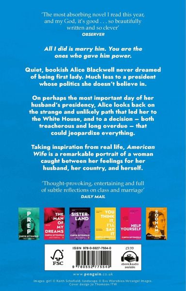 Quiet, bookish Alice Blackwell never dreamed of being First Lady. Much less to a President whose politics she doesn't believe in. On perhaps the most important day of her husband's presidency, Alice looks back on the strange and unlikely path that led her to the White House, and to a decision - both treacherous and long overdue - that could jeopardise everything.