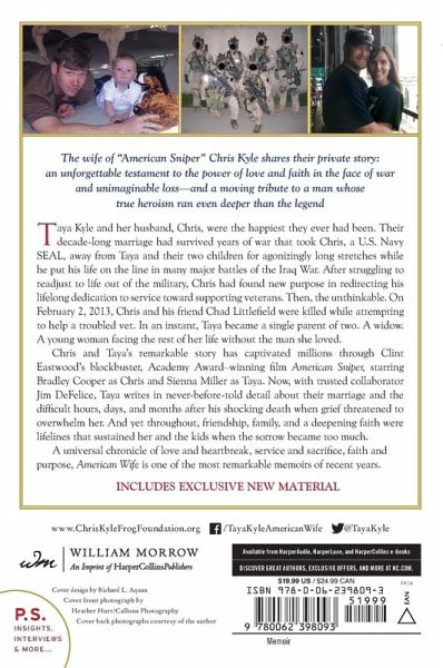 The widow of "American Sniper" Chris Kyle shares their private story: an unforgettable testament to the power of love and faith in the face of war and unimaginable loss--and a moving tribute to a man whose true heroism ran even deeper than the legend