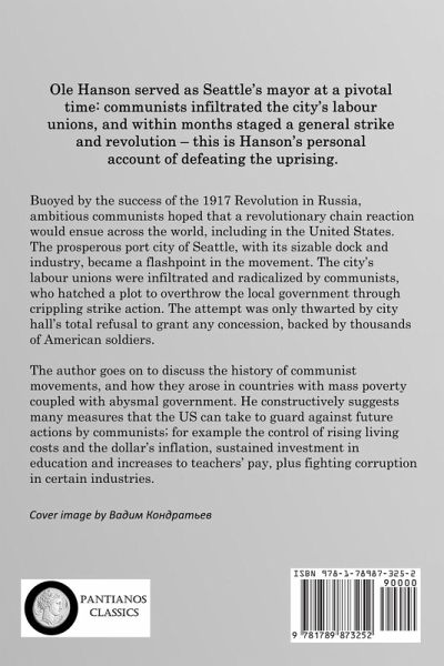 Ole Hanson served as Seattle's mayor at a pivotal time: communists infiltrated the city's labour unions, and within months staged a general strike and revolution - this is Hanson's personal account of defeating the uprising. Buoyed by the success of the 1917 Revolution in Russia, ambitious communists hoped that a revolutionary chain reaction would ensue across the world, including in the United States. The prosperous port city of Seattle, with its sizable dock and industry, became a flashpoint in the movement. The city's labour unions were infiltrated and radicalized by communists, who hatched a plot to overthrow the local government through crippling strike action. The attempt was only thwarted by city hall's total refusal to grant any concession, backed by thousands of American soldiers. The author goes on to discuss the history of communist movements, and how they arose in countries with mass poverty coupled with abysmal government. He constructively suggests many measures that the US can take to guard against future actions by communists; for example the control of rising living costs and the dollar's inflation, sustained investment in education and increases to teachers' pay, plus fighting corruption in certain industries.
