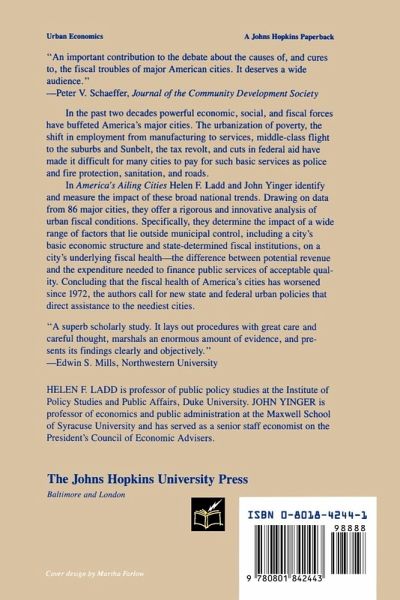 In the past two decades powerful economic, social, and fiscal forces have buffeted America's major cities. The urbanization of poverty, the shift in employment from manufacturing to services, middle-class flight to the suburbs and Sunbelt, the tax revolt, and cuts in federal aid have made it difficult for many cities to pay for such basic services as police and fire protection, sanitation, and roads. In "America's Ailing Cities" Helen F. Ladd and John Yinger identify and measure the impact of these broad national trends. Drawing on data from 86 major cities, they offer a rigorous and innovative analysis of urban fiscal conditions. Specifically, they determine the impact of a wide range of factors that lie outside municipal control, including a city's basic economic structure and state-determined fiscal institutions, on a city's underlying fiscal health-- the difference between potential revenue and the expenditure needed to finance public services of acceptable quality. Concluding that the fiscal health of America's cities has worsened since 1972, the authors call for new state and federal urban policies that direct assistance to the neediest cities.