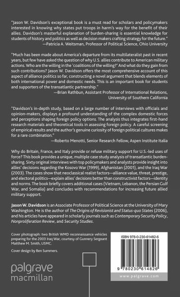 "Jason W. Davidson's exceptional book is a must read for scholars and policy makers interested in knowing why states put troops in harm's way for the benefit of their allies. Davidson's masterful explanation of burden sharing is essential knowledge for students of history and politics, as well as decision makers crafting strategy for the future." - Patricia A. Weitsman, Professor of Political Science, Ohio University