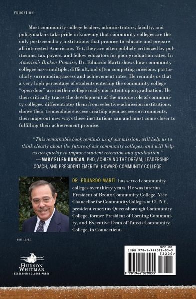 Most community college leaders, administrators, faculty, and policymakers take pride in knowing that community colleges are the only postsecondary institutions that promise to educate and prepare all interested Americans. Yet, they are often publicly criticized by politicians, tax payers, and fellow educators. In America's Broken Promise, Dr. Eduardo Marti shows how community colleges have multiple, difficult, and often competing missions, particularly surrounding access and achievement rates. He reminds us that a very high percentage of students entering the community college "open door" are neither college ready nor intent upon graduation. He then critically traces the development of the unique role of community colleges, differentiates them from selective-admission institutions, shows their success creating open access environments, then maps out new ways these institutions can and must come closer to fulfilling their achievement promise.