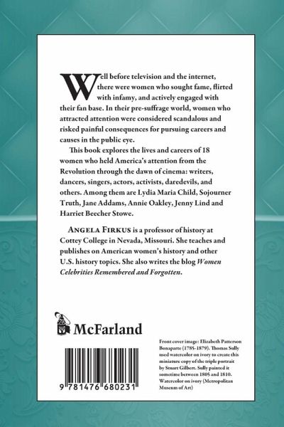 Well before television and the internet, there were women who sought fame, flirted with infamy, and actively engaged with their fan base. In today's pop culture world, it can be hard to understand what the lives of these women were like. In their pre-suffrage world, women who attracted attention were considered scandalous and it was largely uncommon for women to become celebrities. Women who rose to fame in those times had to put up with societal standards for women on top of the lack of privacy and free speech. This book provides the details and context to let us know the women who captured America's heart in the 19th century. Rather than looking at influential women who strictly avoided notoriety, it covers the lives of 18 celebrities like Lydia Maria Child, Sojourner Truth, and Jane Addams.