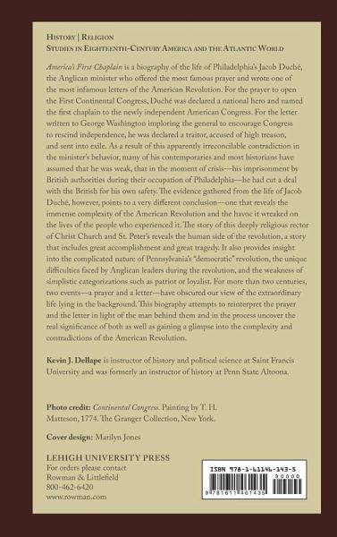 America’s First Chaplain studies the family background, education, ministerial career, ideology, political activities, exile to England, and return to America of Jacob Duché, Anglican minister of Philadelphia’s Christ Church during the American Revolution. Duché played a critical role in the early stages of the revolution as the spiritual mentor of revolutionaries but underwent a process of disaffection as the revolution’s goals and leadership changed that culminated in a treason conviction, exile, and incorrect designation as a loyalist.