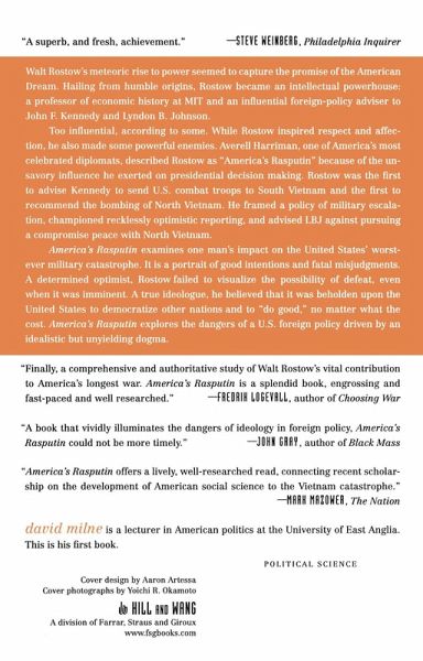 David Milne's America's Rasputin provides the first major study of the man who pushed two presidents into Vietnam. Walt Rostow's meteoric rise to power-from Flatbush, Brooklyn, to the West Wing of the White House-seemed to capture the promise of the American dream. Hailing from humble origins, Rostow became an intellectual powerhouse: a professor of economic history at MIT and an influential foreign policy adviser to John F. Kennedy and Lyndon B. Johnson. Too influential, according to some. While Rostow inspired respect and affection, he also made some powerful enemies. Averell Harriman, one of America's most celebrated diplomats, described Rostow as "America's Rasputin" for the unsavory influence he exerted on presidential decision-making. Rostow was the first to advise Kennedy to send U.S. combat troops to South Vietnam and the first to recommend the bombing of North Vietnam. He framed a policy of military escalation, championed recklessly optimistic reporting, and then advised LBJ against pursuing a compromise peace with North Vietnam. David Milne examines one man's impact on the United States' worst-ever military defeat. It is a portrait of good intentions and fatal misjudgments. A true ideologue, Rostow believed that it is beholden upon the United States to democratize other nations and do "good," no matter what the cost. America's Rasputin explores the consequences of this idealistic but unyielding dogma.