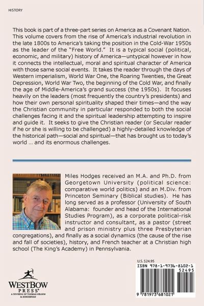 This book is part of a three-part series on America as a Covenant Nation. This volume covers from the rise of America's industrial revolution in the late 1800s to America's taking the position in the Cold-War 1950s as the leader of the "Free World." It is a typical social (political, economic, and military) history of America-untypical however in how it connects the intellectual, moral and spiritual character of America with those same social events. It takes the reader through the days of Western imperialism, World War One, the Roaring Twenties, the Great Depression, World War Two, the beginning of the Cold War, and finally the age of Middle-America's grand success (the 1950s). It focuses heavily on the leaders (most frequently the country's presidents) and how their own personal spirituality shaped their times-and the way the Christian community in particular responded to both the social challenges facing it and the spiritual leadership attempting to inspire and guide it. It seeks to give the Christian reader (or Secular reader if he or she is willing to be challenged) a highly-detailed knowledge of the historical path-social and spiritual-that has brought us to today's world ... and its enormous challenges.