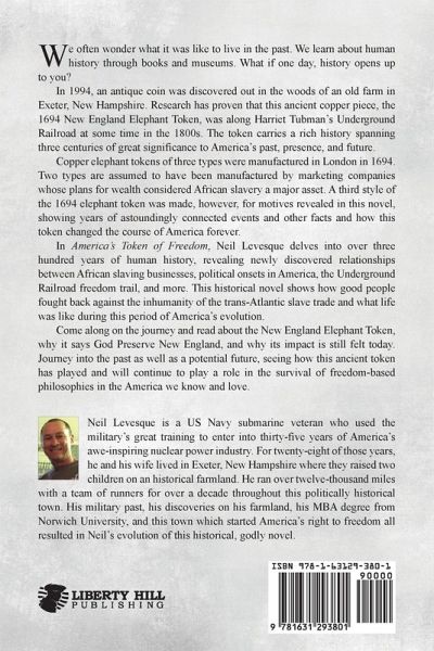 We often wonder what it was like to live in the past. We learn about human history through books and museums. What if one day, history opens up to you? In 1994, an antique coin was discovered out in the woods of an old farm in Exeter, New Hampshire. Research has proven that this ancient copper piece, the 1694 New England Elephant Token, was along Harriet Tubman’s Underground Railroad at some time in the 1800s. The token carries a rich history spanning three centuries of great significance to America’s past, presence, and future. Copper elephant tokens of three types were manufactured in London in 1694. Two types are assumed to have been manufactured by marketing companies whose plans for wealth considered African slavery a major asset. A third style of the 1694 elephant token was made, however, for motives revealed in this novel, showing years of astoundingly connected events and other facts and how this token changed the course of America forever. In America’s Token of Freedom, Neil Levesque delves into over three hundred years of human history, revealing newly discovered relationships between African slaving businesses, political onsets in America, the Underground Railroad freedom trail, and more. This historical novel shows how good people fought back against the inhumanity of the trans-Atlantic slave trade and what life was like during this period of America’s evolution. Come along on the journey and read about the New England Elephant Token, why it says God Preserve New England, and why its impact is still felt today. Journey into the past as well as a potential future, seeing how this ancient token has played and will continue to play a role in the survival of freedom-based philosophies in the America we know and love. Neil Levesque is a US Navy submarine veteran who used the military’s great training to enter into thirty-five years of America’s awe-inspiring nuclear power industry. For twenty-eight of those years, he and his wife lived in Exeter, New Hampshire where they raised two children on an historical farmland. He ran over twelve-thousand miles with a team of runners for over a decade throughout this politically historical town. His military past, his discoveries on his farmland, his MBA degree from Norwich University, and this town which started America’s right to freedom all resulted in Neil’s evolution of this historical, godly novel.