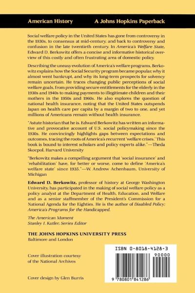 Describing the uneasy evolution of America's welfare programs, Berkowitz explains how Social Security became popular, why it almost went bankrupt, and why its long-term prospects for solvency remain uncertain. He also explores the question of national health insurance, noting that the U.S. outspends Japan on health care per capita by a margin of two to one, and yet millions of Americans remain without health insurance.