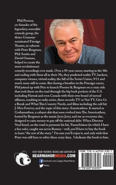 Phil Proctor, co-founder of the legendary, surrealist comedy group, the thrice Grammy-nominated Firesign Theatre, in cahoots with Peter Bergman, Phil Austin and David Ossman, helped to create the most revolutionary comedy recordings ever made. Over a 50-year career, starting in the '60s and ending with them all in their 70s, they predicted reality TV, hackers, computer viruses, virtual reality, the fall of the Soviet Union, 9/11 and much more still to come. But during a breather in the Firesign career, Phil joined up with Pete to launch Proctor & Bergman on a crazy ride that took them on the road through the hip back pockets of the U.S. including Hawaii and even Canada with their own brand of surreal silliness, resulting in radio series, three records: TV or Not TV, Give Us a Break and What This Country Needs, and films including the cult hit J-Men Forever, and the topic of this story: Americathon. It started as Gothamathon, a cabaret skit that soon evolved into The Americathon, hosted by Bergman as the manic Jerry Jerry, and me as everyone else, designed to raise money to pay off the national debt. When Director Neal Israel, on the road to promote his hit, Tunnelvision (in which I have a fun role), caught our act in Boston - well, you'll have to buy the book to learn "the rest of the story." I'm sure you'll enjoy it, and only wish that Peter was still here to relive these crazy daze. I dedicate this book to him.