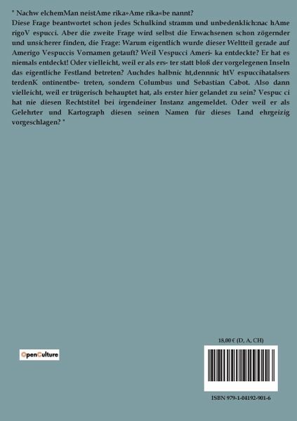 " Nachw elchemMan neistAme rika»Ame rika«be nannt? Diese Frage beantwortet schon jedes Schulkind stramm und unbedenklich:nac hAme rigoV espucci. Aber die zweite Frage wird selbst die Erwachsenen schon zögernder und unsicherer finden, die Frage: Warum eigentlich wurde dieser Weltteil gerade auf Amerigo Vespuccis Vornamen getauft? Weil Vespucci Ameri- ka entdeckte? Er hat es niemals entdeckt! Oder vielleicht, weil er als ers- ter statt bloß der vorgelegenen Inseln das eigentliche Festland betreten? Auchdes halbnic ht,dennnic htV espuccihatalsers terdenK ontinentbe- treten, sondern Columbus und Sebastian Cabot. Also dann vielleicht, weil er trügerisch behauptet hat, als erster hier gelandet zu sein? Vespuc ci hat nie diesen Rechtstitel bei irgendeiner Instanz angemeldet. Oder weil er als Gelehrter und Kartograph diesen seinen Namen für dieses Land ehrgeizig vorgeschlagen? "