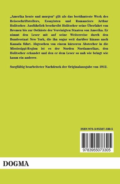 Amerika heute und morgen gilt als das berühmteste Werk des Reiseschriftstellers, Essayisten und Romanciers Arthur Holitscher. Ausführlich beschreibt Holitscher seine Überfahrt von Bremen bis zur Ostküste der Vereinigten Staaten von Amerika. Er nimmt den Leser mit auf seine Weiterreise durch den Bundesstaat New York, die ihn sogar weit darüber hinaus nach Kanada führt. Abgesehen von einem kürzeren Abstecher in die Mississippi-Region ist es der Norden Nordamerikas, den Holitscher erkundet und den er dem Leser so nah wie bringt wie kaum ein anderer.